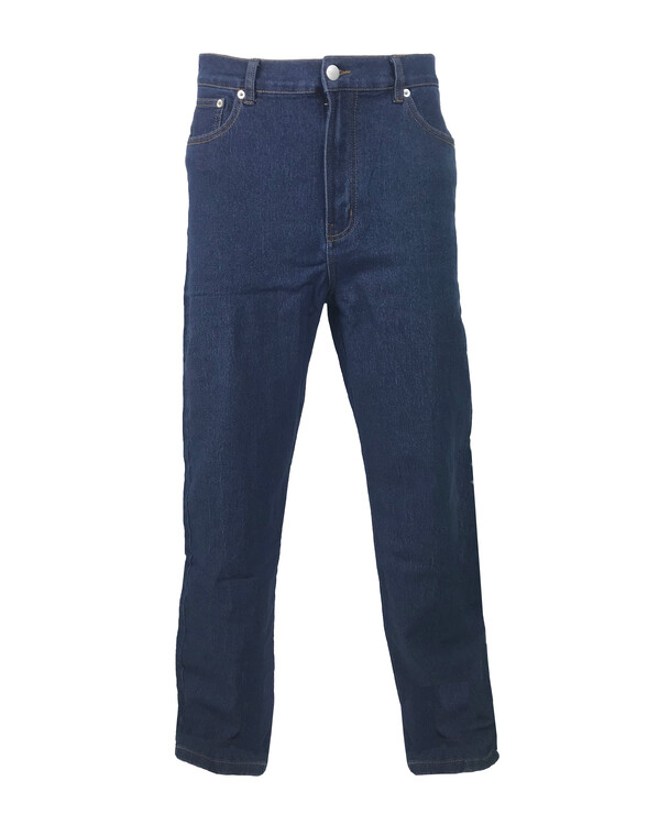 Flotte, behagelige jeans i lige model med elastisk linning. Knap og lynlås. Lommer både foran og bagpå. Afprøvet model med god pasform. Indvendig benlængde følger størrelse D96-D120 ca. 75-80 cm, størrelse 46-58 ca. 77-82 cm. 70% bomuld, 28% polyester, 2% spandex. Vask 40°.